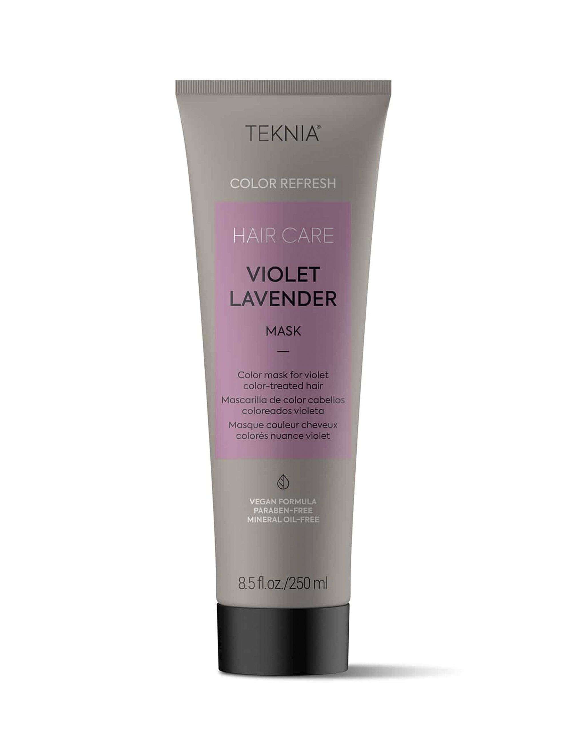 Masque de couleur rafraîchissante pour cheveux de couleur violette.